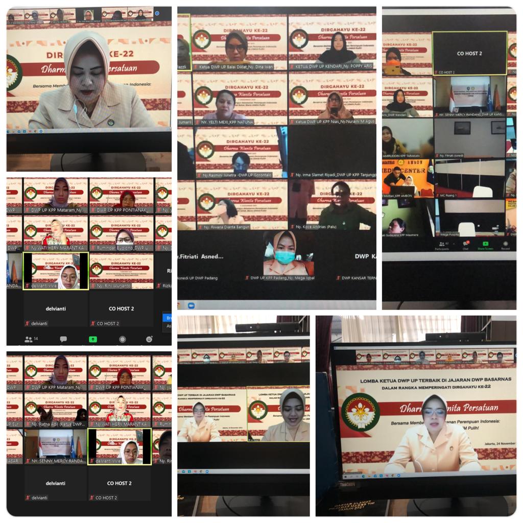 Ketua DWP Balai Diklat mengikuti lomba Ketua DWP UP terbaik dalam rangka memperingati HUT ke 22 DWP yang dilaksanakan secara online, diikuti 1 orang