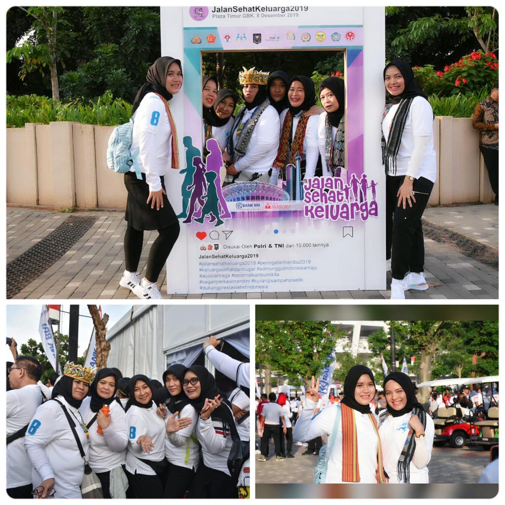 Ketua DWP Balai Diklat mengikuti acara jalan sehat keluarga dalam rangka menyambut hari Ibu di plaza Timur BGK Senayan, diikuti oleh 1 orang anggota