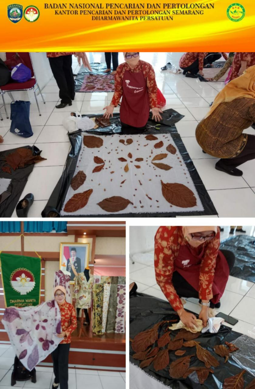 Senin 21 Maret 2022 Dharma Wanita Persatuan Unsur Pelaksana Kantor Pencarian Dan Pertolongan Semarang menghadiri Rapat Kerja Dharma Wanita Persatuan Provisi Jateng. Dengan materi Pelatihan Ecoprint. Pemateri Ibu Sri Rahayu Tri Handoko bertempat di gedung DWP Provonsi Jateng lantai 5 .Diwakili oleh Bu Arum.