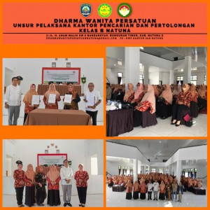 Dharma Wanita Persatuan Unsur Pelaksana Kantor Pencarian Dan Pertolongan Natuna Menghadiri Giat Pertemuan Rutin Dharma Wanita Persatuan Kabupaten Natuna Dengan Agenda Penandatanganan MOU Dinas BLK Dan PT.Pegadaian Natuna Serta Seminar Literasi Produk-produk PT.Pegadaian. Bertempat Digedung Wanita Jl.Batu Sisir Bukit Arai-Natuna