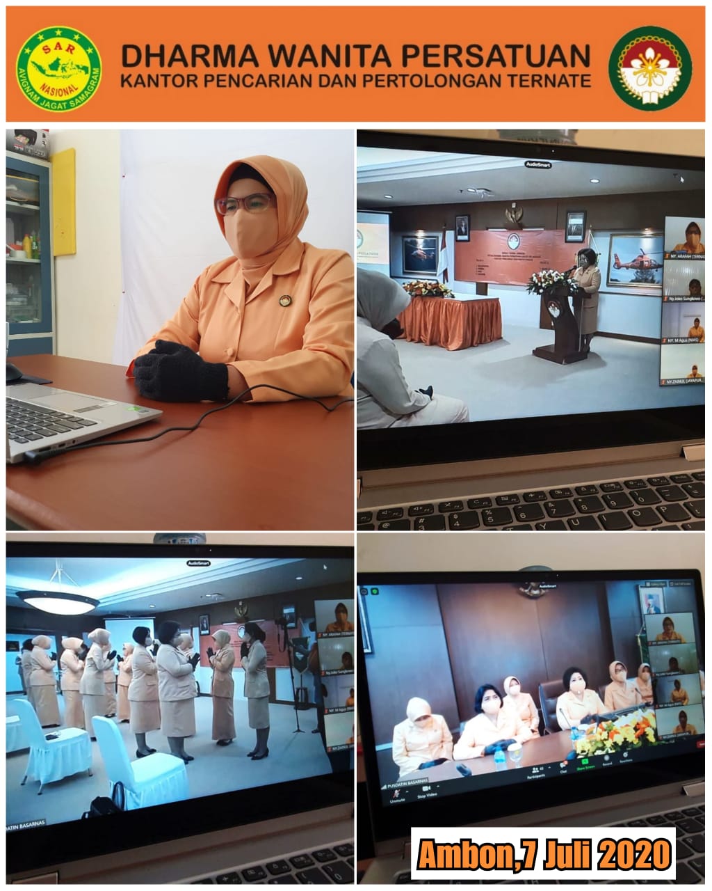 Ternate 7 Juli 2020 Ketua DWP Kantor Pencarian dan Pertolongan Ternate mengikuti Acara Pelantikan Ketua DWP melalui Video Converence Call.