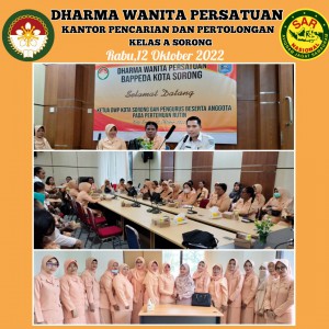 Pada Hari Rabu ,12 Oktober 2022 Anggota DWP Up Kantor Pencarian dan Pertolongan Sorong mengikuti Pertemuan Rutin Bulanan bertempat di Kantor BAPPEDA Kota Sorong yang di wakilkan oleh 3 Anggota yaitu Ny.Indri Bambang (Sekretaris),Ny.Irma Amrhy(Bid.Ekonomi)dan Ny.Ikhe Joko(Bid.Ekonomi).