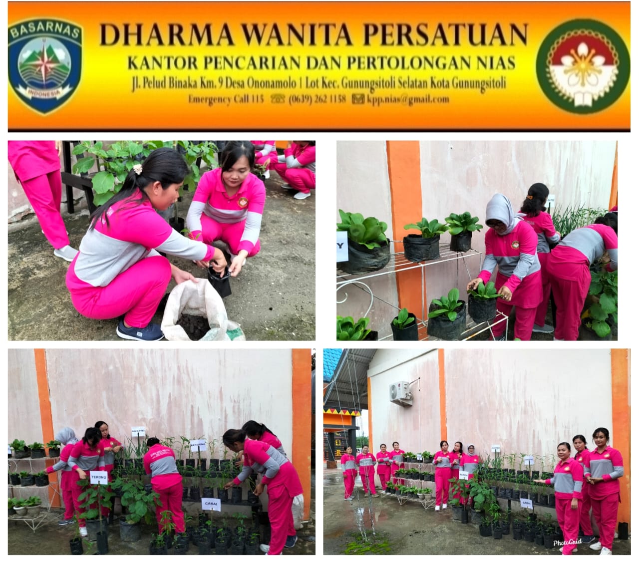 Jumat 21 Oktober 2022, Ibu Ketua dan ibu2 Dharma Wanita Persatuan Kantor Pencarian dan Pertolongan Nias menanam pohon pakcoy, pohon terong, pohon kangkung ,pohon cabai dan pohon daun pre guna mendukung program ketahanan pangan.