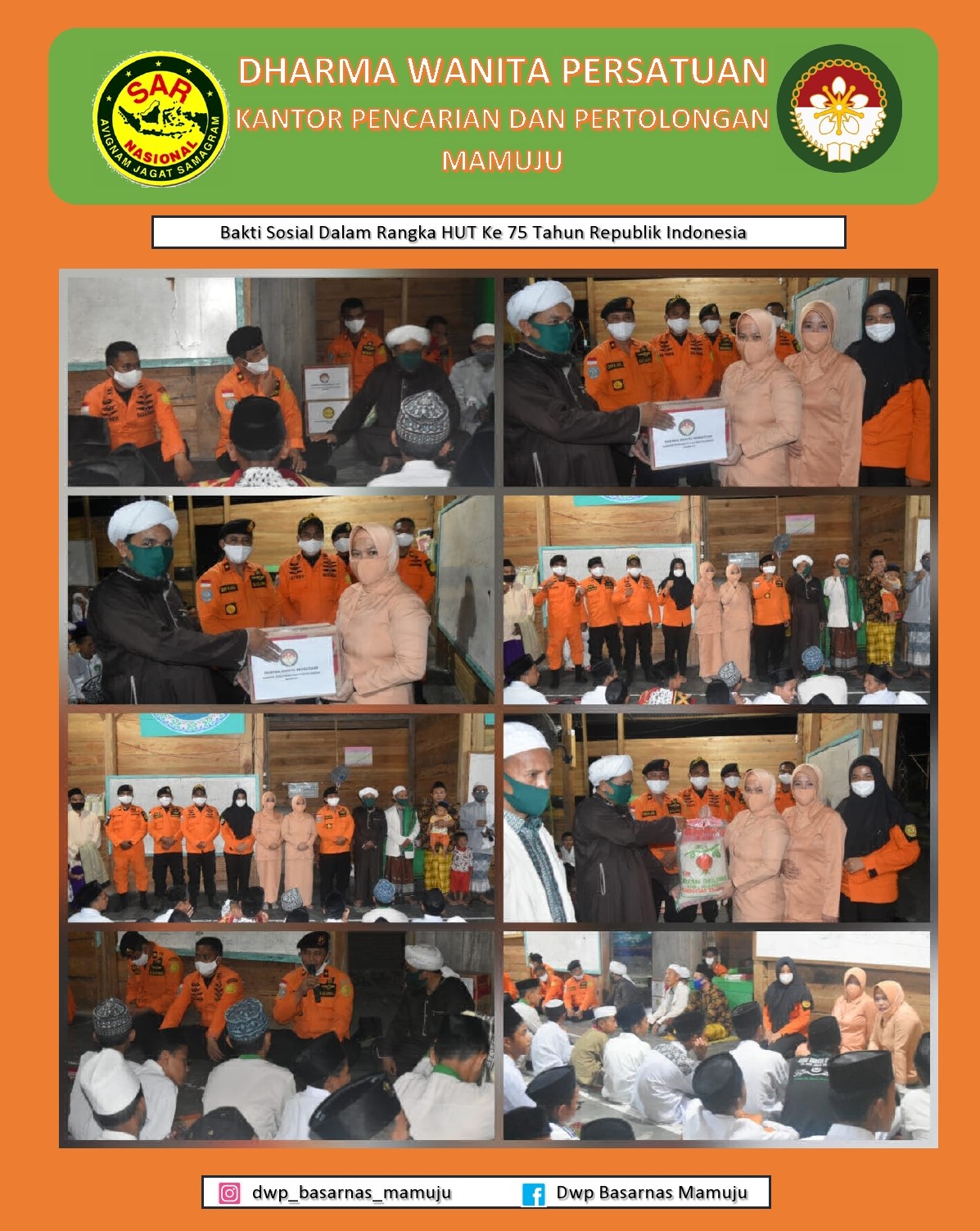 Dalam rangka Hut ke 75 Tahun Republik Indonesia, DWP Kantor Pencarian dan Pertolongan Mamuju melakukan silaturahmi dan memberikan bantuan sembako ke PONPES NW GENTUNGAN.