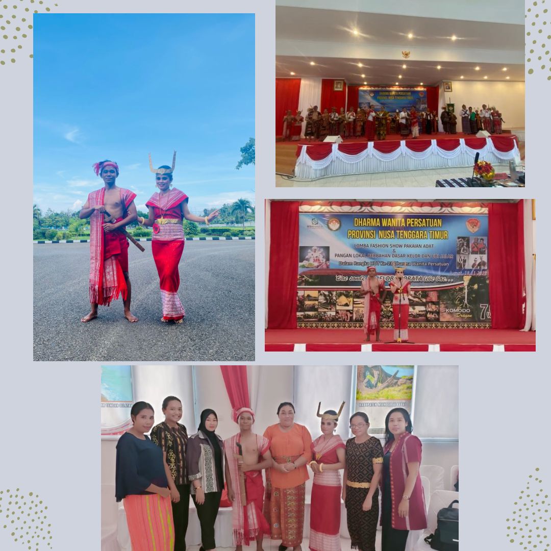 Anggota DWP UP KPP Kupang mengikuti Lomba Fashion Show Pakaian Adat Nusa Tenggara Timur dalam rangka HUT ke 23 DWP tingkat Propinsi NTT.