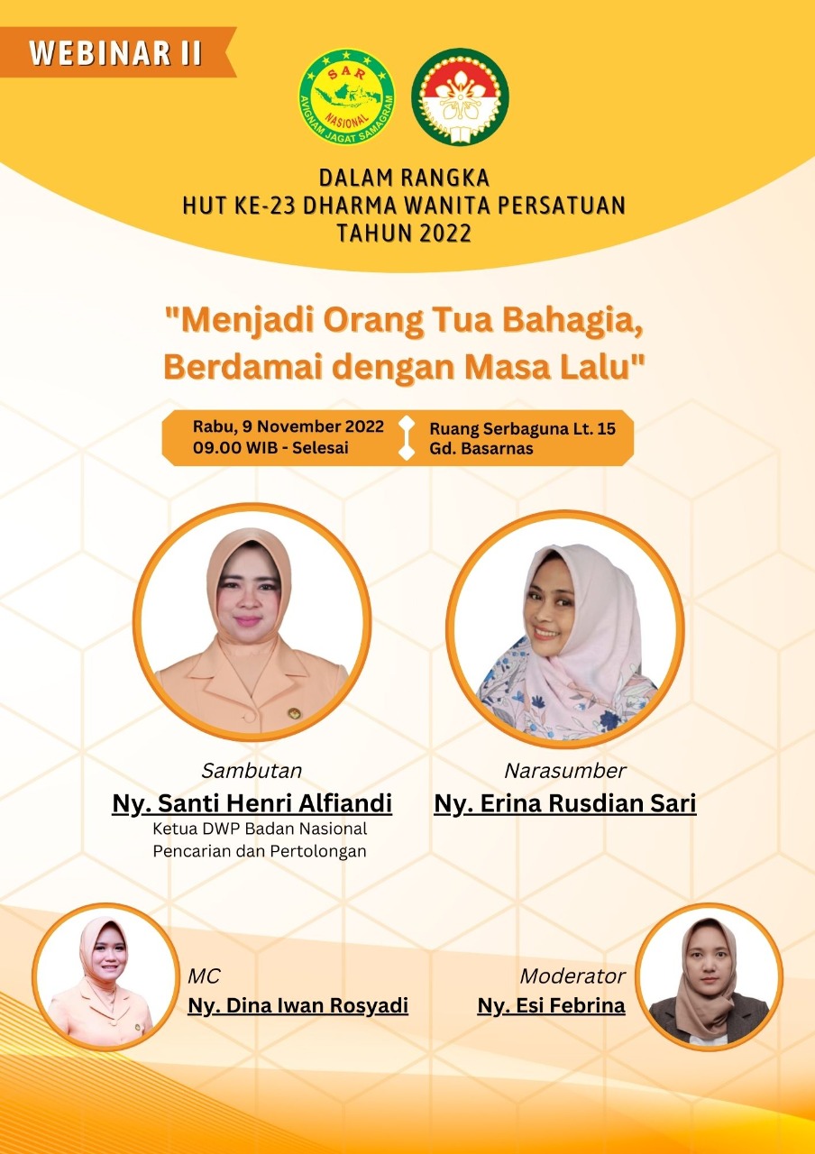 Dalam Rangka HUT ke-23 DHARMA WANITA PERSATUAN Tahun 2022, DWP UP Balai Diklat mengikuti webinar "MENJADI ORANG TUA BAHAGIA, BERDAMAI DENGN MASA LALU" dengan narasumber Ny. Erina Rusdian Sari. Rabu, 9 November 2022 dengan peserta 1. Ny. Ade Fariz 2. Ny. Kiky Yuda 3. Ny. Ros Budi 4. Ny. Lestari Ridho 5. Ny. Westy Agustinus 6. Ny. Rahma Andriana 7. Ny. Trifenty Torang 8. Ny. Icha Tatar Tantrum pada anak adalah ekspresi yang dikeluarkan untuk mencari perhatian orang tua, maka kenalilah "kebutuhan" anak, apakah Pelukan, Waktu, Bicara dan lainnya. Jadilah orang tua bahagia dengan memaafkan diri sendiri, apa yang terjadi itu adalah kehendak alam, kita tidak punya kuasa akan itu, masa lalu jangan dibuang tapi belajar dari kejadian. Kunci untuk bahagia maafkan masa lalu, putus rantainya, maafkan orang-orang yang terlibat, bahagiakan diri.