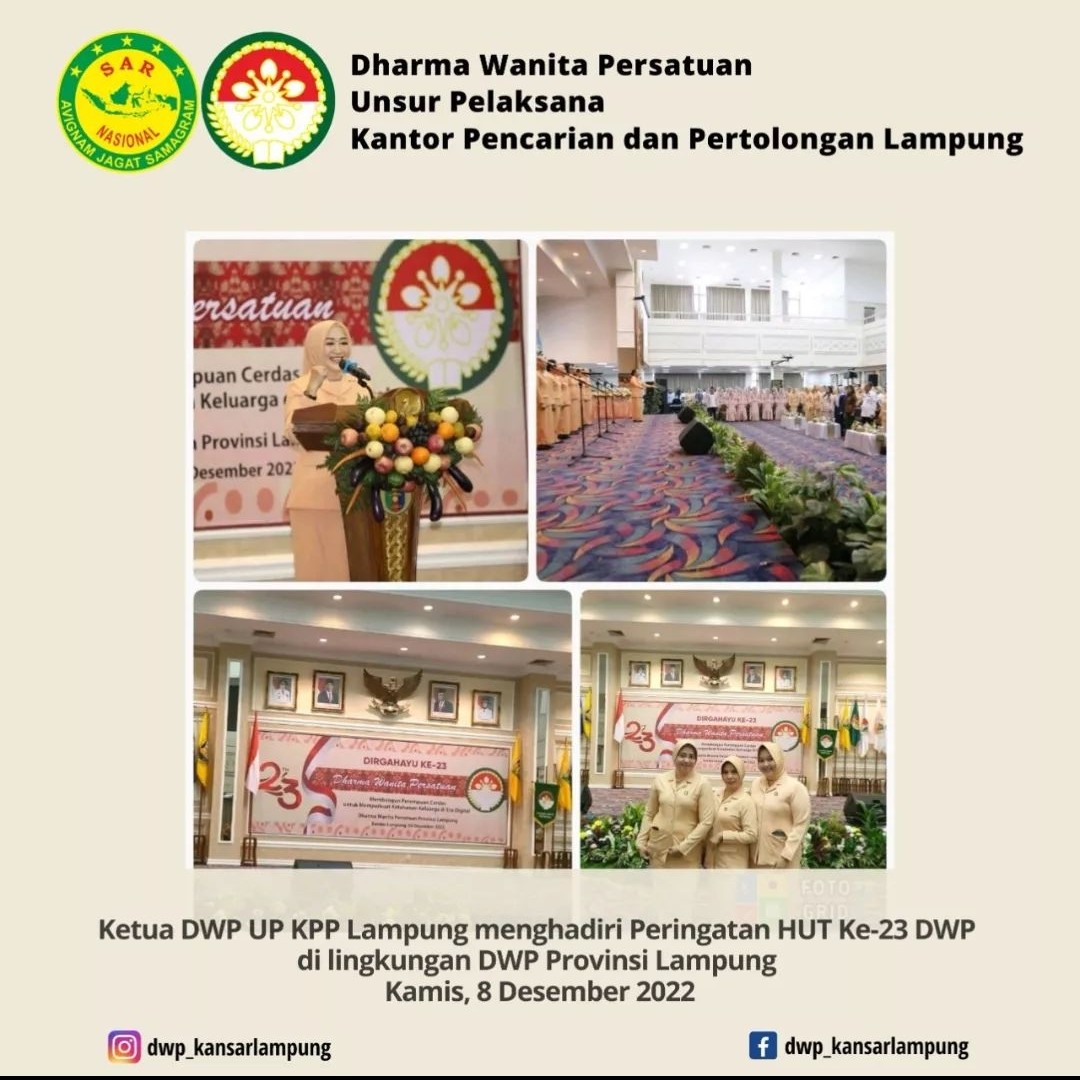 Kamis, 08-12-2022. Ketua DWP UP KPP Lampung menghadiri upacara peringatan HUT DWP ke-23 yg dilaksanakan oleh DWP Prop Lampung bertempat di Balai Keratun lt.3 kantor gubernur Lampung.