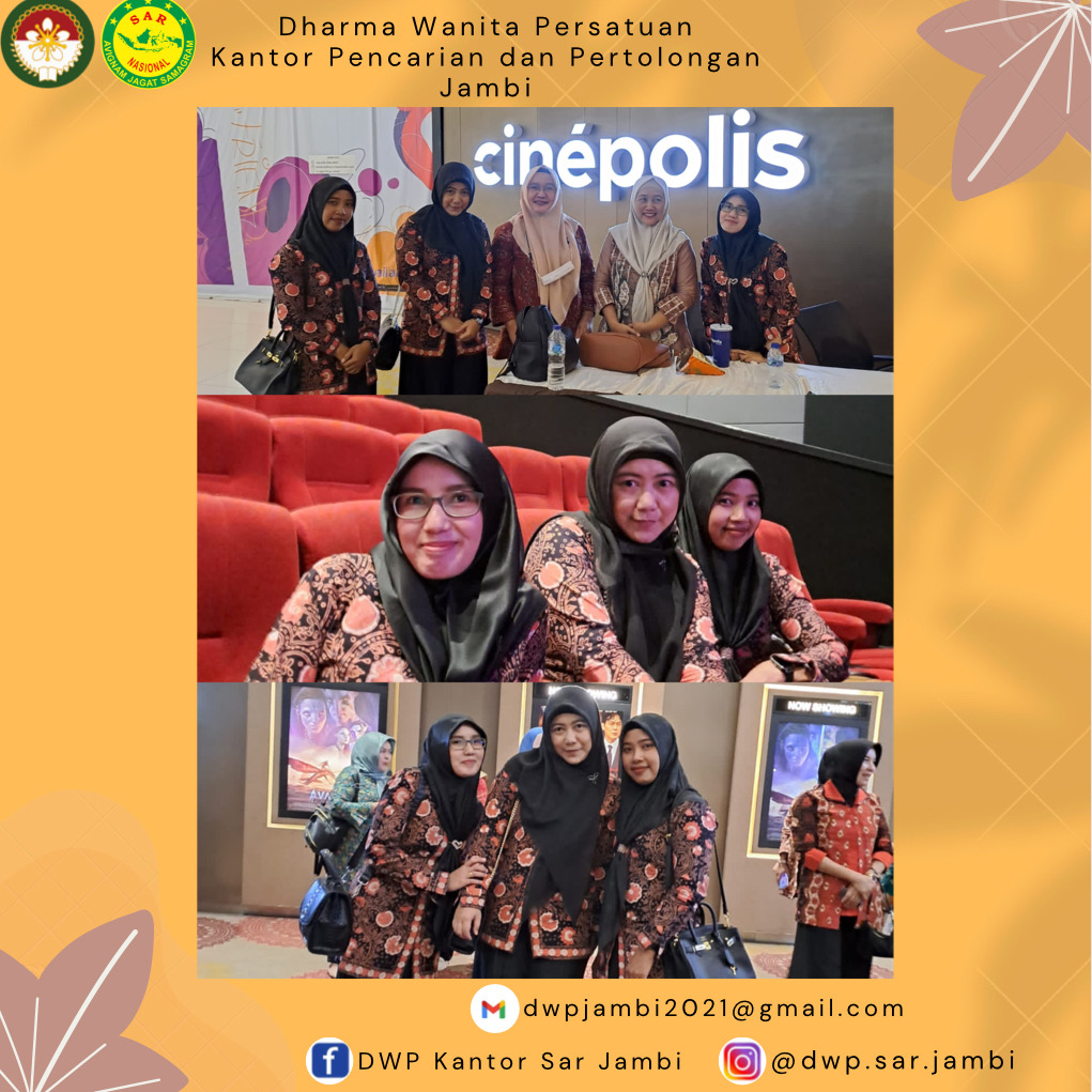 Senin, 19 Desember 2022 Dalam rangka memperingati hari Disabilitas, hari Kesetiakawanan Sosial Nasional dan Peringatan Hari Ibu, Ibu Ketua DWP Provinsi Jambi beserta Unsur Pelaksana dan OPD terkait mengadakan Kegiatan Nonton Bioskop Bareng ( NOBAR ) film "TEGAR" yang diikuti oleh Ny. Muthia Rio, Ny. Dina Anto dan Ny. Neni Ujang.