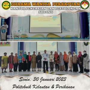 Senin, 30 Januari 2023 Pengurus DWP UP Kantor Pencarian dan Pertolongan Sorong,Ny. Rosna Muslikun Selaku Wakil Ketua di dampingi Ny. Indri Bambang Selaku Sekretaris menghadiri acara Lepas Sambut Darma Wanita Persatuan Kota Sorong, bertempat di Aula Politeknik Kelautan dan Perikanan Sorong.