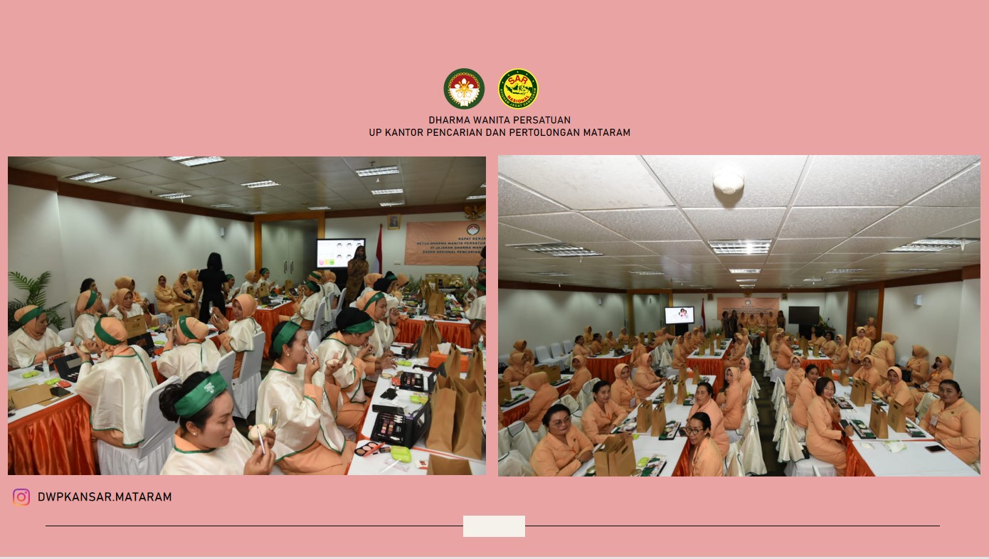 Pada tanggal 14 Februari 2023, Ketua DWP UP Kantor Pencarian dan Pertolongan Mataram mengikuti Beauty Class yang dilaksanakan oleh DWP Badan Nasional Pencarian dan Pertolongan dan diikuti oleh seluruh Ketua Unsur Pelaksana se-Indonesia bertempat di Ruang Rapat Lantai 2 Gedung Basarnas Jakarta