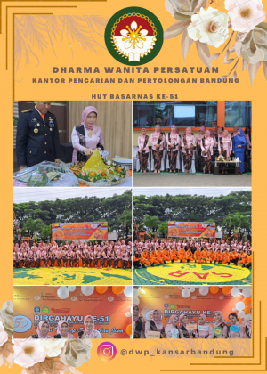 Puncak Perayaan HUT Basarnas ke 51 di Kantor SAR Bandung Bandung, 28 Februari 2023- Basarnas Berulang tahun ke 51 , dalam rangka memperingati HUT Basarnas ke 51, DWP UP Kantor Pencarian dan Pertolongan (Basarnas) Bandung mengikuti upacara HUT Basarnas di Lapang Kantor Pencarian dan Pertolongan Bandung. Kepala Kantor SAR Bandung, Jumaril SE., M.M selaku pembina DWP UP Kansar Bandung bertindak langsung selaku inspektur upacara.
